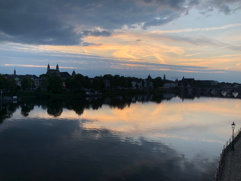 Maastricht wanneer de zon ondergaat.